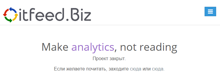 Где-то полгода назад я запустил хобби-проект itfeed.biz — агрегатор новостей об интернет-маркетинге, стартапах и подобном. А сегодня торжественно его закрываю.