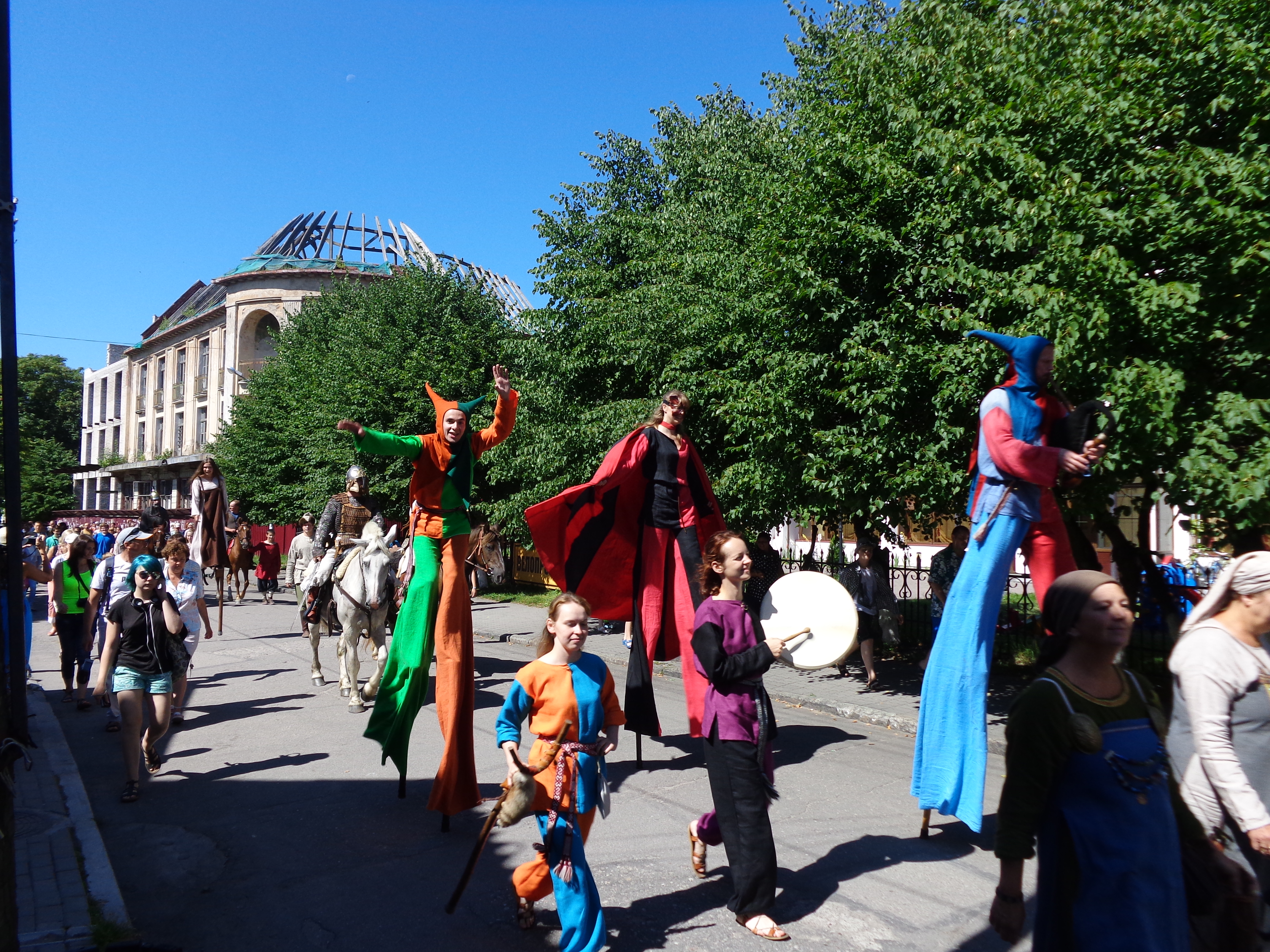 Особое внимание привлекали не конные воины, а шуты и балагуры на ходулях: