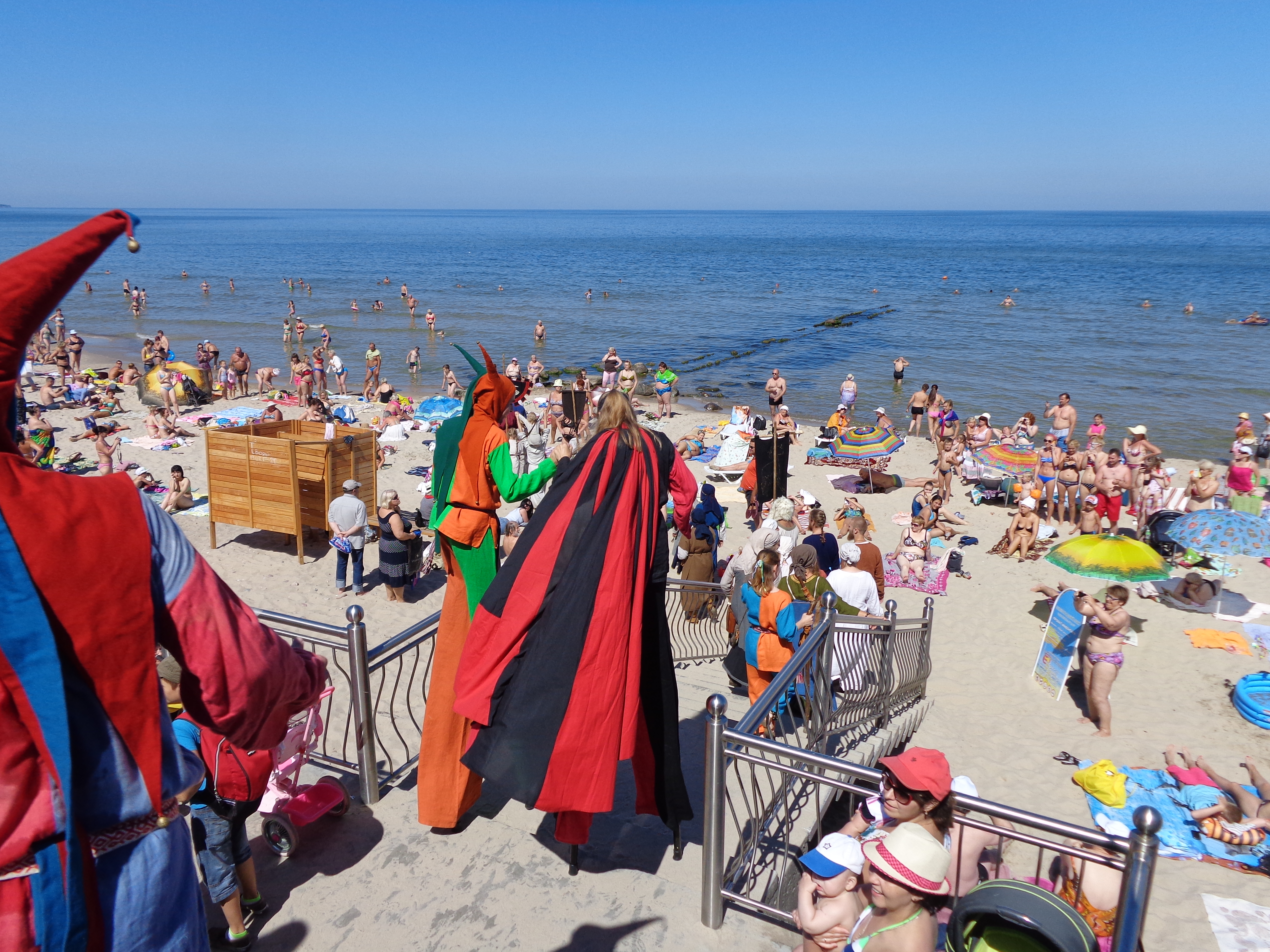 Шествие двинулось к месту проведения фестиваля, по пути завернув на пляж — предводитель, грозно взмахнув булавой, провозгласил «мы пойдем их грабить!».