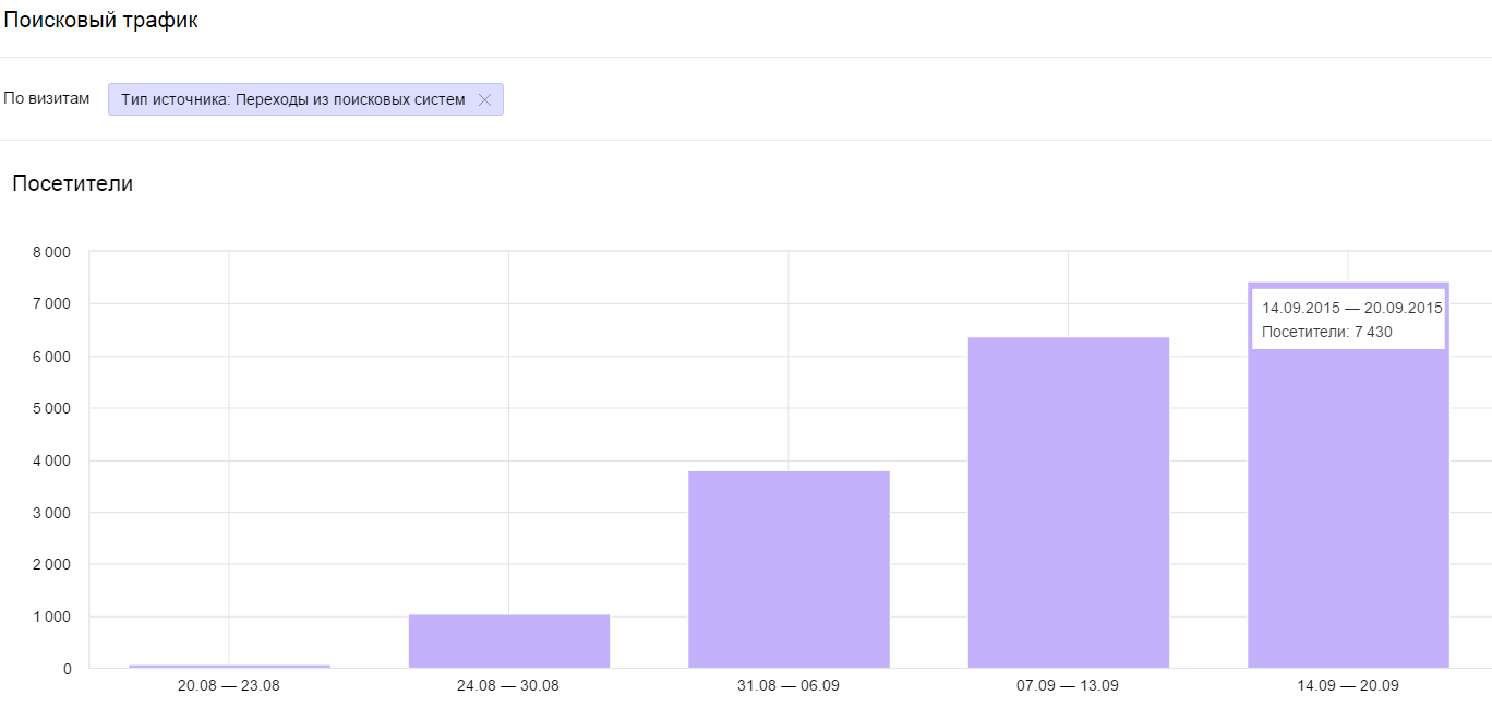 Сегодня как раз месяц с даты открытия сайта к индексации, посещаемость на 22.00 часа по Москве — 1422 уника. Проект в коммерческой нише (понятно, что для тематик вроде кино/развлекуха такой результат совершенно обычен), имеет мощных конкурентов, почти не содержит уникального контента (при этом не нарушает ничьих авторских прав). Конечно, это только начало, в Яндексе успело произойти только 3 апдейта — не срок.