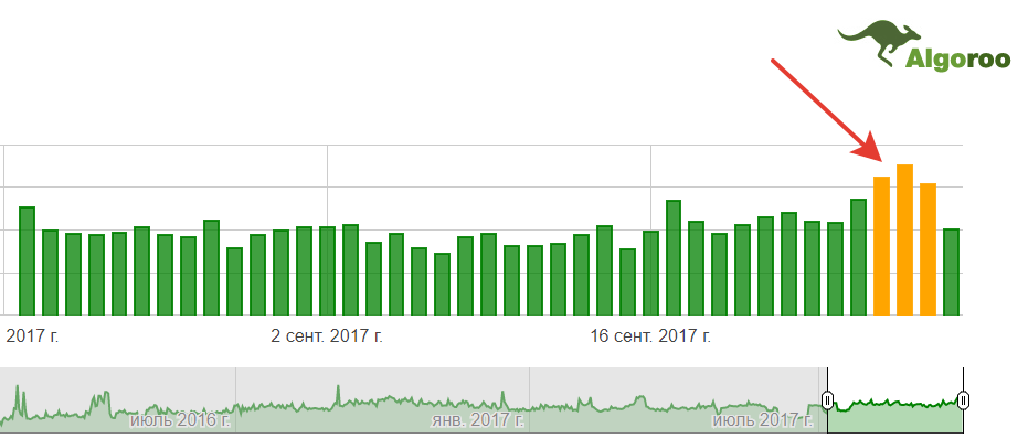 По-прежнему крайне важно соотношение «хорошие»/»плохие» страницы; по-прежнему «хорошими» считаются те, что могут ответить хоть на какой-то запрос пользователя. Если на сайте будет достаточно много таких страниц, они помогут всему проекту успешно ранжироваться, невзирая на балласт в виде проблемных документов. На ряде изучаемых сайтов обнаружена дополнительная отрицательная динамика в сентябре. Вероятно, принцип «в сайте все страницы должны быть прекрасны» стал еще более значимым, чем раньше.