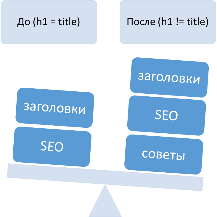Во-вторых, бездумное использование различающихся title и h1 может повредить трафику. Любое решение по SEO должно приниматься осознанно и обоснованно!