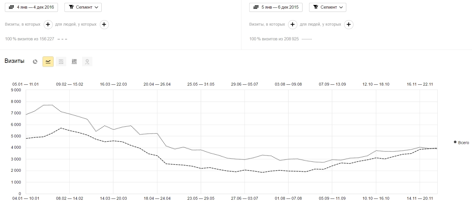 К началу декабря трафик наконец превысил прошлогодние показатели (тут важны детали, поэтому нормальный график только по клику):