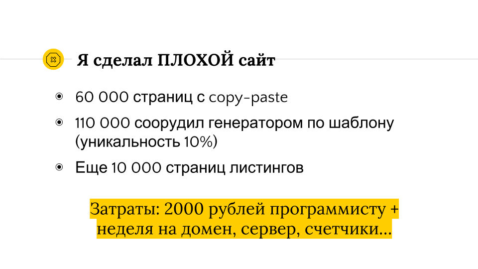 - Если у вас есть задача повысить полноту индекса в Google, то в первую очередь нужно озаботиться структурой проекта и экономией краулингового бюджета. Не стоит полагаться на sitemap как универсальное решение (это типичная ошибка: «укажем все в карте и спим спокойно»).