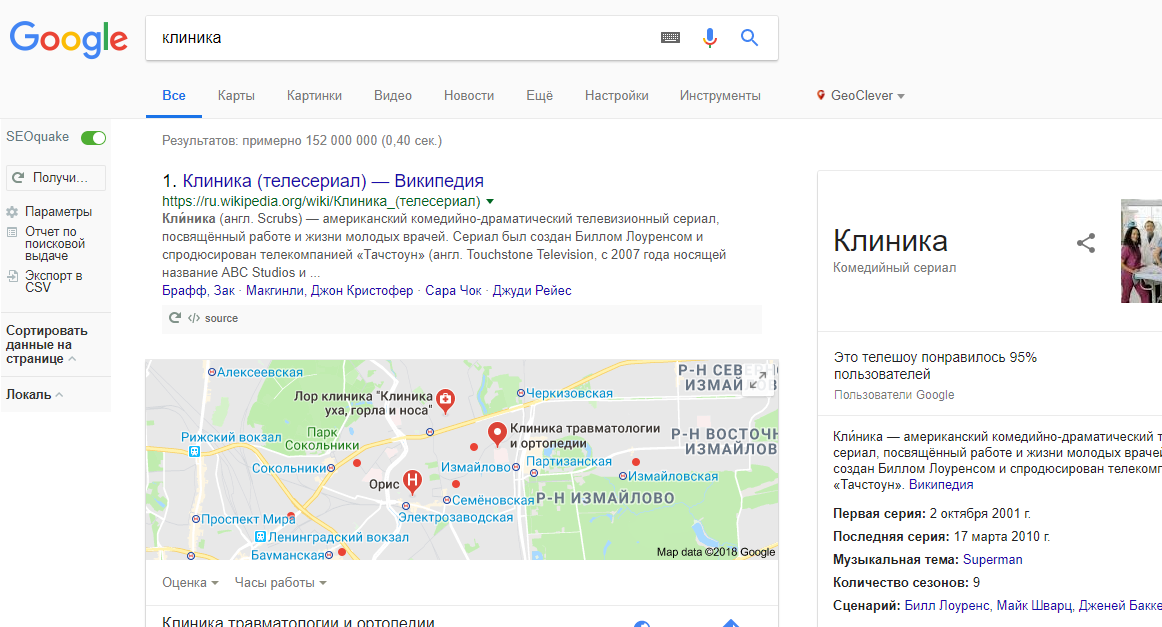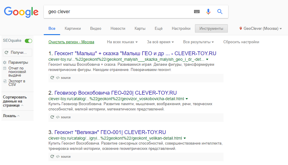 Давайте поищем сам GeoClever, указав в настройках регион «Москва»:
