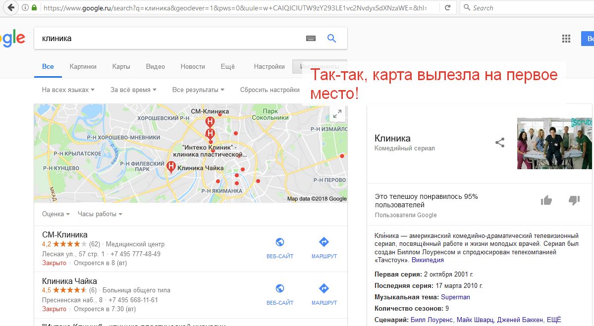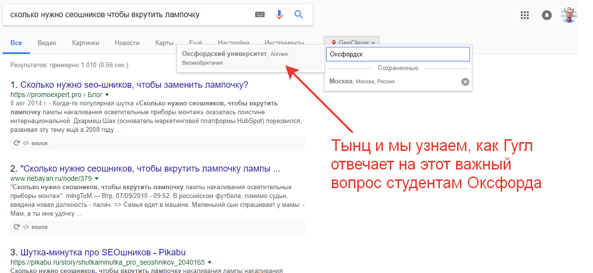 Любой желающий может убедиться, что реальная московская выдача выглядит совсем иначе; Google легко находит ссылки на расширение. Еще пример.