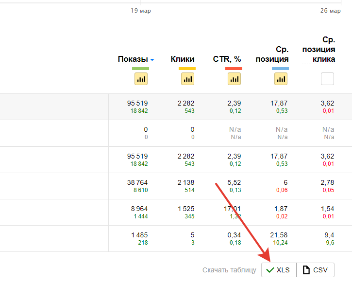 Аналогичная статистика есть и по каждому отдельному запросу, не только по группам.