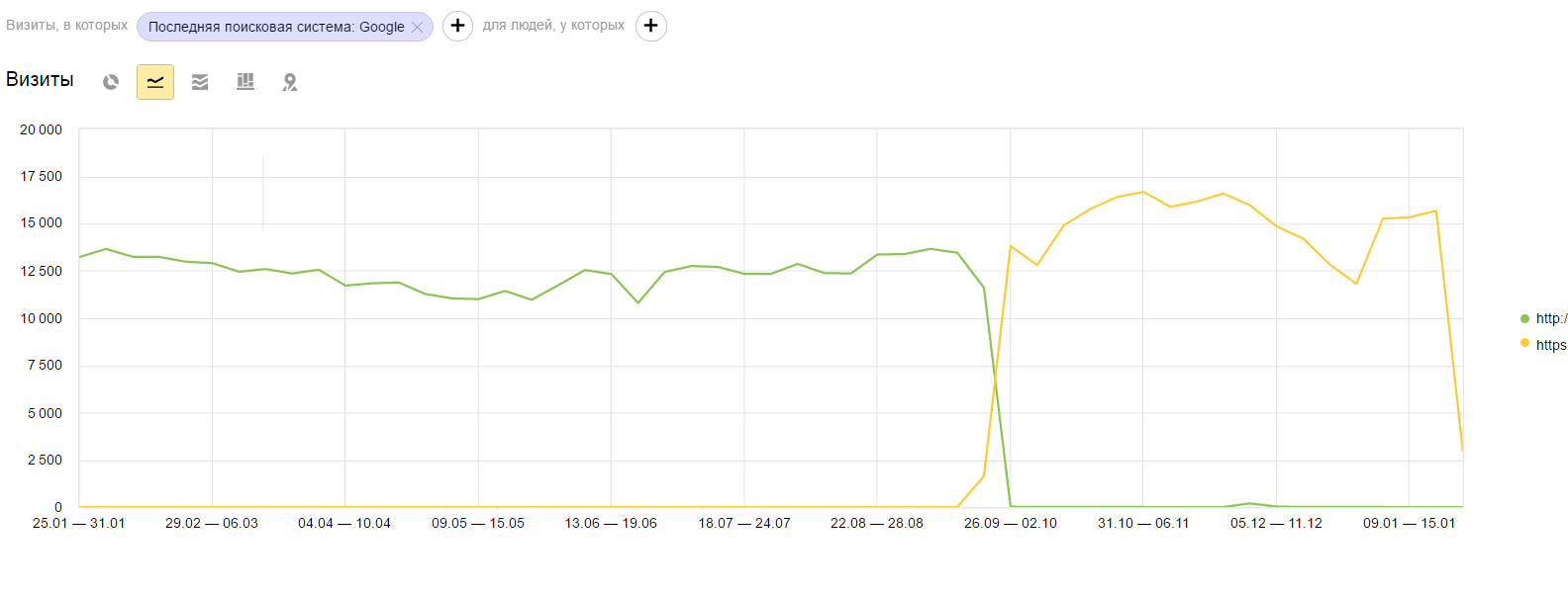 Идея очень проста. Отследим на приличной выборке, как смена протокола влияет на поисковый трафик и обобщим данные.