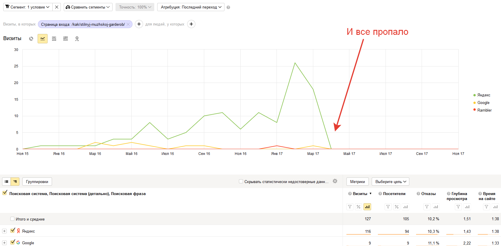 1. Как и что делать в Гугл Аналитикс, если страница потеряла трафик?
