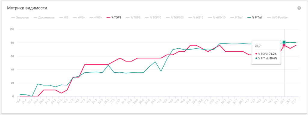 - Подбираем семантику и посадочные страницы, разбиваем по категориям, загружаем в сервис. Сразу начинают мониториться видимость и технические показатели, видимость конкурентов по категориям.