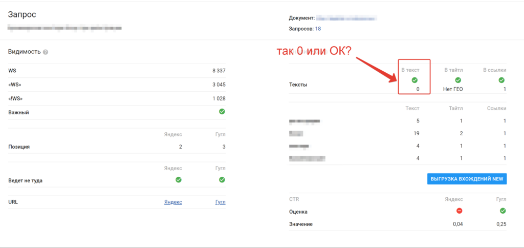 - Семантика, которая связана с документом, довольно перспективна — в ТОП-5 Google довольно мало запросов (а в ТОП-3 нет вообще), но они дают ненулевой трафик.