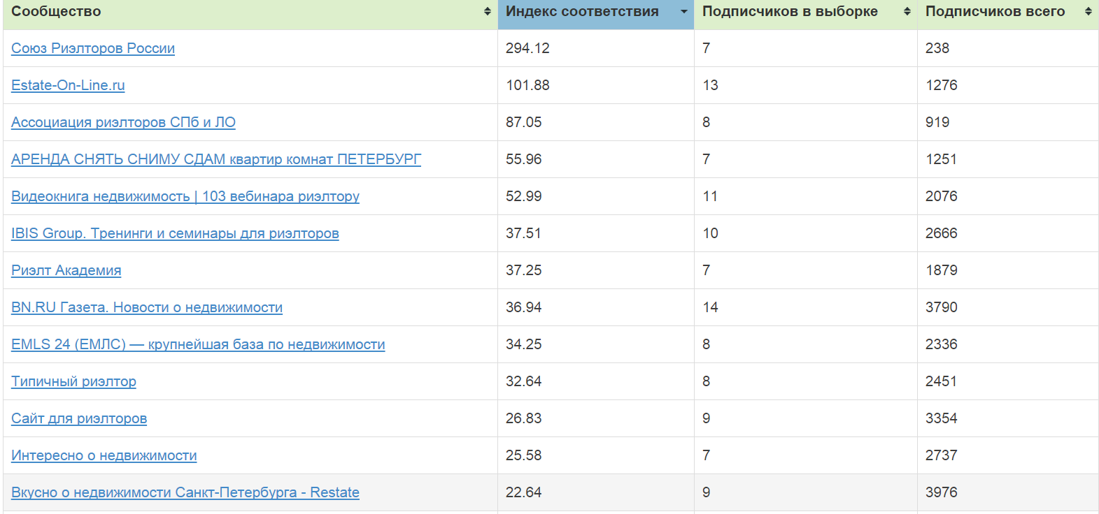 Более сложный пример. Допустим, мы продаем какой-нибудь специальный софт или сервис для, ну, например, риэлторов в Санкт-Петербурге. Легко найти группы, где сидят именно риэлторы? Уже не очень: