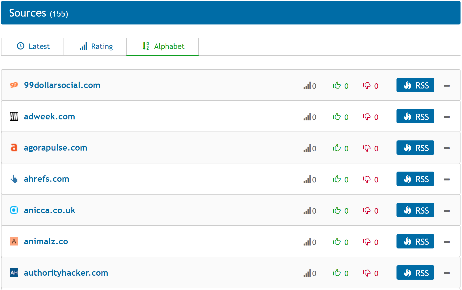 В данный момент сайт агрегирует 155 блогов и новостных сайтов.