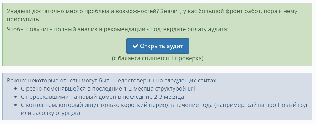 Однако я заметил, что некоторые пользователи оплачивают даже аудиты со скудной информацией (они получаются, если статистика сайта содержит слишком мало данных).